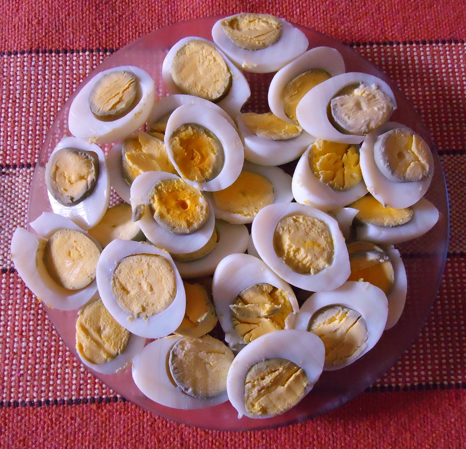 E por fim um pratinho de ovos das garnizes, devidamente cozidos e também cortados ao meio, para serem degustados com Azeite Extra Virgem de Oliva e sal, a gosto.